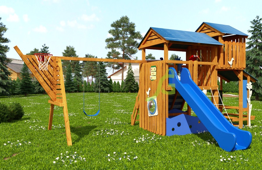 Детская площадка Домик 3 - это полноценный игровой комплекс для общественных мест, рассчитанный на активных детей разного возраста. Главная особенность этой площадки - двухуровневая башня с крышей, которая станет центром притяжения для юных исследователей и фантазеров. Ваши дети найдут здесь множество занятий: усиленная волновая горка длиной 3 метра с высоты 1,5 метра подарит быстрый спуск, а гибкие качели на цепях позволят взлетать высоко. Скалодром и канат развивают ловкость и силу, деревянная лестница с перилами ведет на верхний уровень. На первом этаже есть столик со скамейкой и навесом, где можно отдохнуть, а также игровой прилавок, доска для рисования и панель для игры в "Крестики-нолики" для развития логики и творческих способностей. Площадка изготовлена из клееного бруса сечением 100х100 мм, что обеспечивает высокую прочность и долговечность конструкции. Все деревянные элементы обработаны нетоксичными пропитками, защищающими от влаги, грибка и насекомых, при этом сохраняя естественную текстуру дерева. Оцинкованный крепеж устойчив к коррозии. Площадка соответствует стандартам ГОСТ, что подтверждает ее безопасность для детских игр. Мы доставляем площадки по всей России. Доставка до терминала транспортной компании в вашем городе бесплатна. Собрать комплекс можно самостоятельно за 1-2 дня, используя подробное руководство по сборке, или воспользоваться услугами наших опытных мастеров, стоимость которых составит 15% от цены площадки.