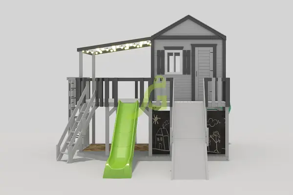 Детская площадка Домик D3 - это компактное решение для активного отдыха детей от 3 до 12 лет. Она спроектирована так, чтобы даже на небольшом участке ваш ребенок получил максимум возможностей для игр и развития. Главная особенность - это продуманное зонирование для разнообразных активностей. В состав площадки входит горка длиной 2,2 метра, которая дарит радость спуска. Для развития ловкости есть скалодром с цветными зацепами, а также сетка-лазалка. На качельной балке расположены две подвесные качели, где можно весело раскачиваться. Под домиком обустроена песочница, которая всегда будет в тени. Все элементы расположены удобно и безопасно. Площадка изготовлена из клееного бруса хвойных пород, который устойчив к деформациям и влаге. Древесина обработана специальной пропиткой для защиты от грибка, плесени и насекомых. Все крепежные элементы оцинкованы, что предотвращает коррозию. Конструкция соответствует требованиям ГОСТ Р 52169-2012 по безопасности детских игровых площадок. Мы доставляем площадки по всей России. Доставка до терминала транспортной компании в вашем городе бесплатна. Сборка площадки займет у вас 1-2 дня, если вы решите собрать ее самостоятельно. Также вы можете заказать услугу сборки у наших опытных мастеров, и они установят Домик D3 быстро и профессионально.