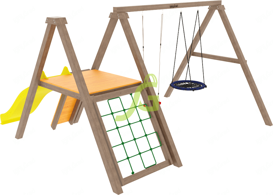 Детская площадка Классик 1 - это компактное решение для активного отдыха детей от 3 до 12 лет. Она предлагает разнообразные элементы для игр и физического развития, занимая при этом небольшую площадь на вашем участке. Главная особенность - это продуманное сочетание классических развлечений, которые никогда не надоедают. Площадка включает в себя качельный модуль с А-образной башней, что придает конструкции устойчивость. Здесь есть пластиковый скат длиной 2,2 метра для веселых спусков. Для развития ловкости и координации предусмотрен скалодром и сетка для лазания. В комплекте вы найдете качели-гнездо диаметром 100 см, где можно качаться одному или с другом, а также одиночные качели для классического катания. Мы используем только безопасные и проверенные материалы. Основные элементы изготовлены из клееного бруса, который отличается прочностью и долговечностью. Металлические соединения выполнены из оцинкованного крепежа, устойчивого к коррозии. Все деревянные детали обработаны специальной пропиткой, защищающей от влаги, грибка и насекомых. Площадка соответствует государственным стандартам безопасности для детского игрового оборудования. Площадка поставляется по всей России. Доставка до терминала транспортной компании в вашем городе бесплатна. Вы можете собрать комплекс самостоятельно за 1-2 дня, следуя подробной инструкции, или воспользоваться услугами наших профессиональных сборщиков, чтобы сэкономить время и силы.