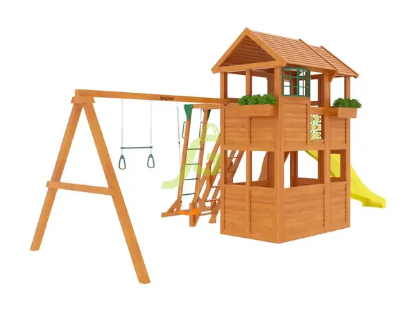 Детская площадка "Клубный домик 2 Люкс" - это компактный игровой комплекс для детей от 3 лет, который отлично подходит для дачи или небольшого загородного участка.