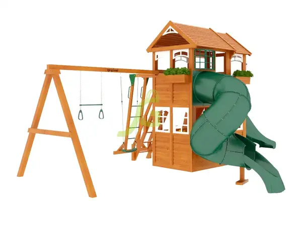Детская площадка Клубный домик 2 с трубой и рукоходом Люкс - это полноценный игровой комплекс для детей от 3 до 12 лет, который станет центром притяжения на вашем участке. Главная особенность этой модели - двухуровневый домик с трубой-горкой, который дарит детям ощущение настоящего приключения. Площадка предлагает множество активностей: закрытый домик с деревянной крышей и дверью, два вида горок - волновую и горку-трубу, скалодром для развития ловкости, рукоход для укрепления мышц. Также в комплекте канат, качельный модуль с одиночными качелями и трапецией с кольцами, а для спокойных игр предусмотрена доска для "Крестиков-ноликов". Все элементы площадки сделаны из клееного бруса хвойных пород, обработанного специальной пропиткой, которая защищает древесину от влаги и вредителей. Крепеж оцинкован, что предотвращает коррозию и гарантирует надежность соединений. Конструкция соответствует требованиям ГОСТ и не имеет острых углов, обеспечивая безопасность во время игр. Мы доставляем площадки по всей России, а до транспортной компании в вашем городе - бесплатно. Сборка не займет много времени: вы можете собрать площадку самостоятельно за 1-2 дня, следуя подробной инструкции, или воспользоваться услугами наших опытных мастеров.