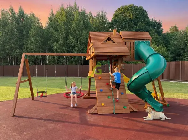 Детская площадка Крепость Фани Делюкс 2 - это полноценный игровой комплекс для детей от 3 до 12 лет. Она выполнена в виде сказочного теремка с двумя уровнями, который станет центральной частью вашего двора и подарит ребенку множество ярких впечатлений. Главная особенность этой площадки - извилистая горка-труба, попасть на которую можно, преодолев несколько игровых элементов. Комплекс предлагает множество активностей: двухуровневый домик с чердачным и мансардными окнами, скалодром с разноцветными камнями, комбинированная лестница и веревочная лестница для подъема. Спуститься можно по волновой горке или по захватывающей горке-трубе. Дополнительный игровой домик соединяется с основной конструкцией, а рукоход развивает координацию. Качельный модуль включает две гибкие качели на цепях в резиновой оболочке, трапецию с кольцами и качели-гнездо. Для развития мелкой моторики и логического мышления предусмотрена доска для игры в "Крестики-нолики", а бинокль и руль добавят реалистичности в ролевые игры. Площадка изготовлена из клееного бруса, который обработан безопасными пропитками, защищающими дерево от влаги, грибка и насекомых. Все деревянные элементы тщательно отшлифованы. Крепежные элементы оцинкованы, что гарантирует их долговечность и устойчивость к коррозии. Конструкция соответствует требованиям ГОСТ, обеспечивая высокий уровень безопасности для детей. Прорезиненные ручки и усиленные всесезонные комплектующие гарантируют надежность и комфорт использования. Мы доставляем площадки по всей России. Доставка до терминала транспортной компании в вашем городе бесплатна. Собрать комплекс можно самостоятельно за 1-2 дня, следуя подробной инструкции, которая входит в комплект. Если вы предпочитаете профессиональную сборку, наши мастера выполнят ее быстро и качественно.