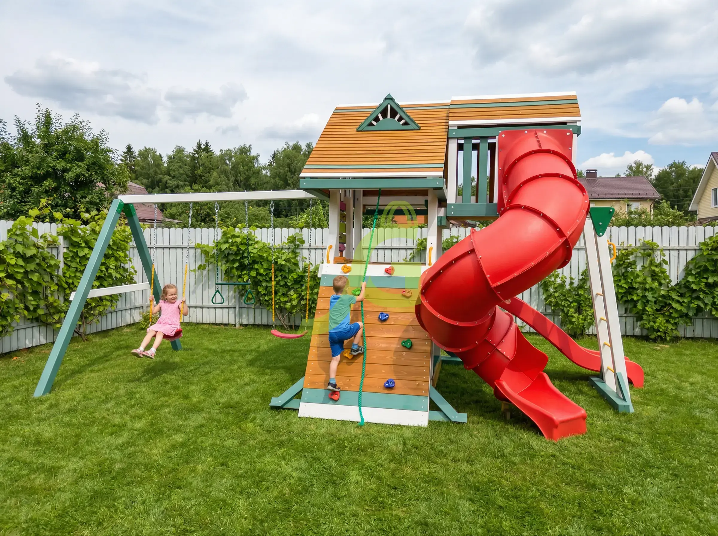 Детская площадка Крепость Фани Делюкс 2 мод.1 - это большой игровой комплекс для детей от 3 лет, который позволит им почувствовать себя настоящими исследователями и защитниками. Главная особенность этой площадки - двухуровневый домик с дополнительным закрытым пространством на втором этаже, что создает множество сценариев для игр. Ваши дети смогут скатиться с волновой горки длиной 3 метра или испытать восторг от скоростного спуска по горке-трубе. Подняться на платформу можно по двойной широкой лестнице или по веревочной лестнице-шторм-трапу. Для развития силы и ловкости предусмотрены широкий скалодром, канат и рукоход. Качельный модуль включает качели-гнездо "паутинка", две гибкие качели на цепях и трапецию с кольцами. Игровые элементы, такие как доска "крестики-нолики", бинокль и штурвал, добавят разнообразия в ежедневные приключения. Конструкция площадки выполнена из клееного бруса сечением 100х100 мм, что обеспечивает ее прочность и долговечность. Все деревянные элементы обработаны безопасной пропиткой, защищающей от внешних воздействий и продлевающей срок службы. Используется оцинкованный крепеж, устойчивый к коррозии. Площадка соответствует всем требованиям ГОСТ по безопасности для детских игровых комплексов. Мы доставляем площадки по всей России. Доставка до терминала транспортной компании в вашем городе осуществляется бесплатно. Собрать комплекс самостоятельно можно за 1-2 дня, следуя подробной инструкции. Если вы предпочитаете доверить сборку профессионалам, наши мастера готовы выполнить эту работу.