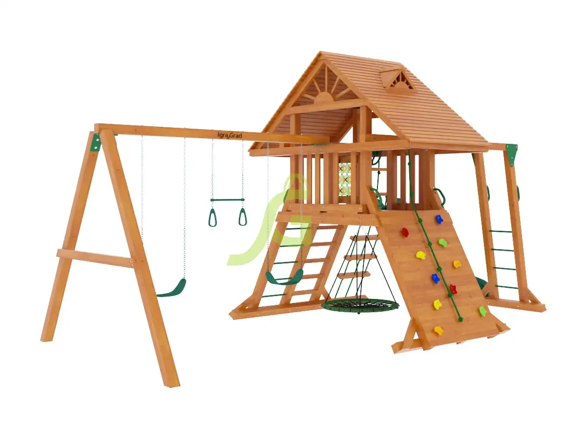 Детская площадка Шато Сан мод.1 - это масштабный игровой комплекс для детей от 3 до 12 лет, который станет центром притяжения на вашем загородном участке.