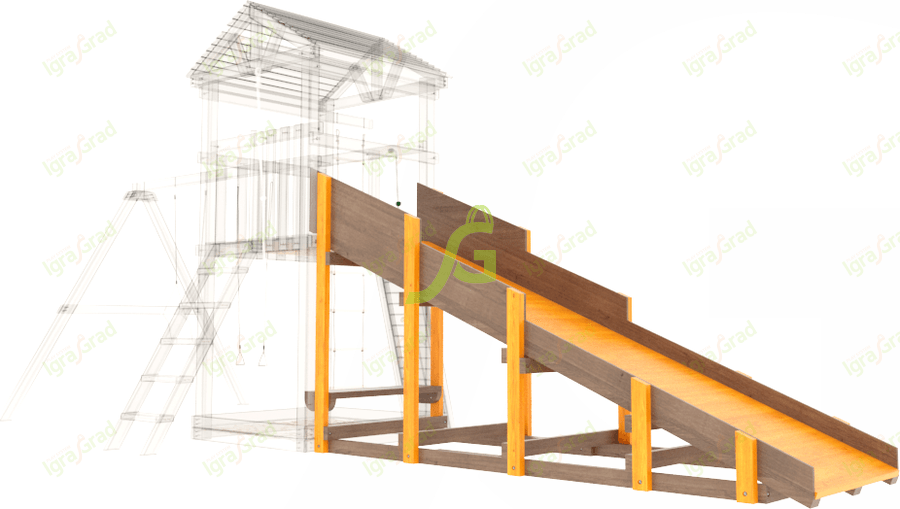 Модуль Snow Fox для Панда Фани, скат 4 м - деревянная детская площадка для детей 3-10 лет. Размеры 1,19 x 3,78 м. Качественный клееный брус, надежные крепления, иллюстрированная инструкция по сборке.