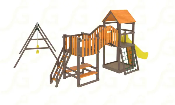 Детская площадка Панда Фани Мостик - это решение для активного отдыха детей от 3 до 13 лет. Она подойдет для установки в общественных местах: во дворах, парках, на территориях детских садов. Главная особенность этой модели - мостик, соединяющий две башни, который добавит разнообразия в игры. Площадка предлагает множество развлечений. Здесь есть высокая 3-метровая горка, скалодром с камнями для развития ловкости и силы, а также удобная деревянная лестница. Качельный модуль оборудован двумя гибкими качелями на цепях, которые можно выбрать в желаемом цвете. Для самых маленьких предусмотрена песочница, где они смогут строить замки и лепить пасочки. При создании площадки использован клееный брус - это прочный и долговечный материал. Все элементы тщательно обработаны специальной пропиткой, защищающей дерево от влаги и вредителей. Для крепления деталей применяется оцинкованный крепеж, устойчивый к коррозии. Конструкция соответствует требованиям ГОСТ, что гарантирует безопасность во время игр. В комплекте вы найдете 14 якорей для надежной фиксации площадки. Мы доставим площадку по всей России, а до терминала транспортной компании в вашем городе - бесплатно. Собрать комплекс вы сможете самостоятельно, используя подробное руководство, которое идет в комплекте. Обычно это занимает 1-2 дня. Если вы предпочитаете доверить сборку профессионалам, наши мастера выполнят эту работу за дополнительную плату.