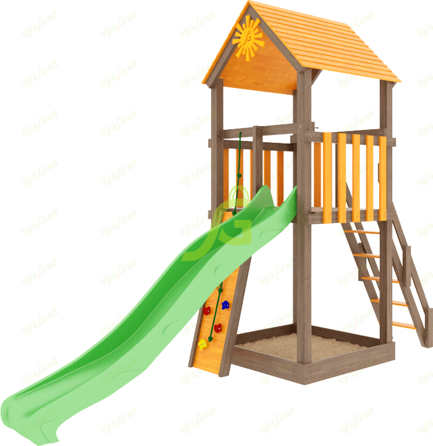 Детская площадка Панда Фани Тауер скалодром - это компактный игровой комплекс для детей от 3 до 10 лет. Его главная особенность - скалодром, который развивает координацию и силу, предлагая необычный способ добраться на верхнюю башню. На площадке есть множество активностей: волновая горка для веселых спусков, песочница, расположенная под крышей, что защищает от солнца и дождя. Также предусмотрена классическая деревянная лестница. Башня станет отличным местом для сюжетных игр, а скалодром с разноцветными зацепами добавит азарта и вызовов. Конструкция выполнена из клееного бруса 90х90 мм, что обеспечивает надежность и долговечность. Деревянные элементы обработаны нетоксичным антисептическим составом, который защищает от влаги, ультрафиолета и продлевает срок службы. Все крепежные элементы оцинкованы, что предотвращает коррозию. Площадка соответствует стандартам безопасности. Мы доставляем площадки по всей России. Доставка до терминала транспортной компании в вашем городе бесплатна. Собрать площадку можно самостоятельно за 1-2 дня, следуя подробной инструкции. Если вы предпочитаете профессиональный подход, наши мастера готовы выполнить сборку.
