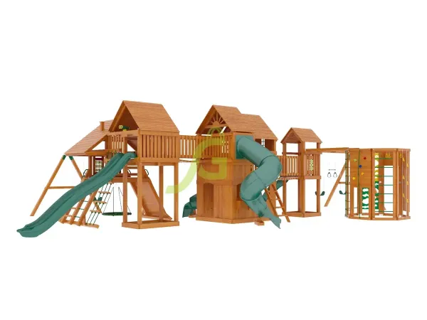 В комплект Великан Deluxe мод.2 входит: дополнительная башня, скалодром с канатом, качельный модуль, волновая горка. Все элементы обработаны защитным покрытием, безопасным для детей. Сертификация по ГОСТ.