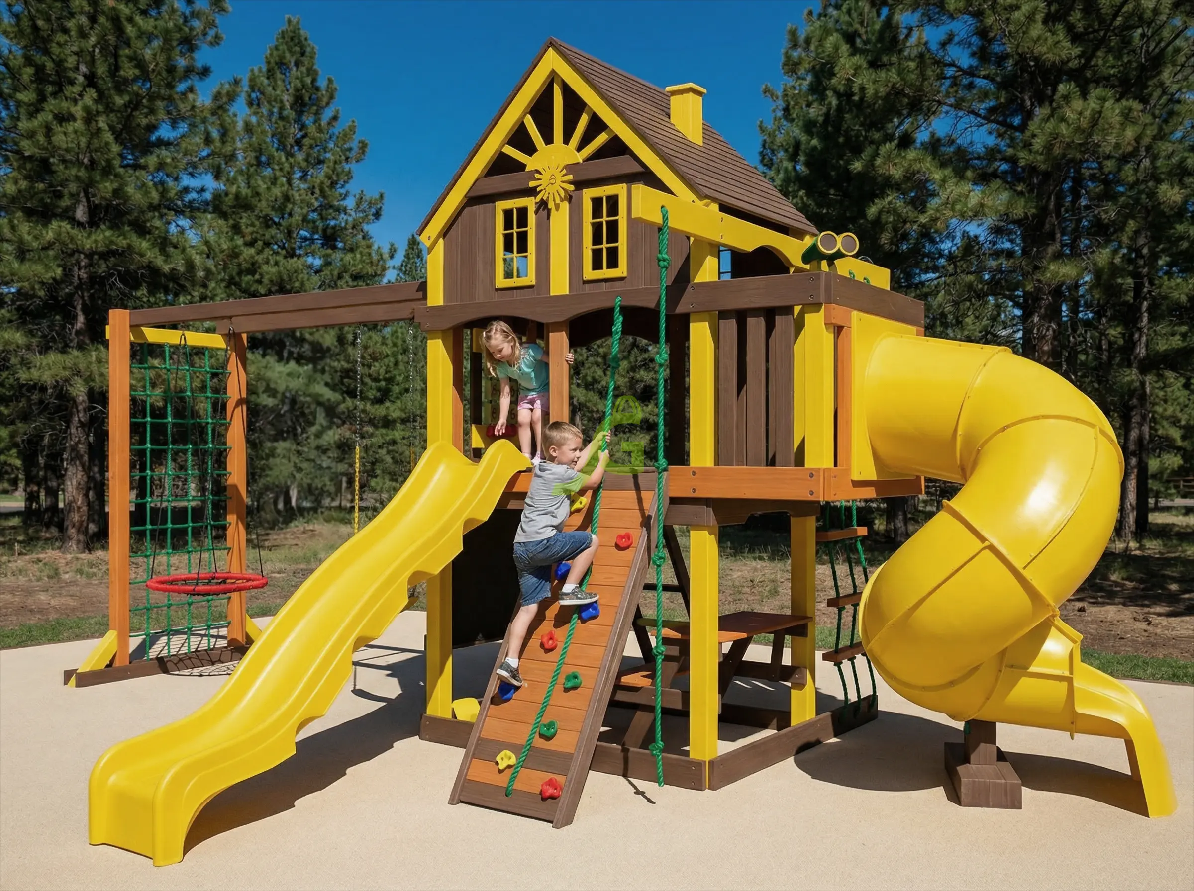 Детская площадка Шато Сан мод.1 - это масштабный игровой комплекс для детей от 3 до 12 лет, который станет центром притяжения на вашем загородном участке.