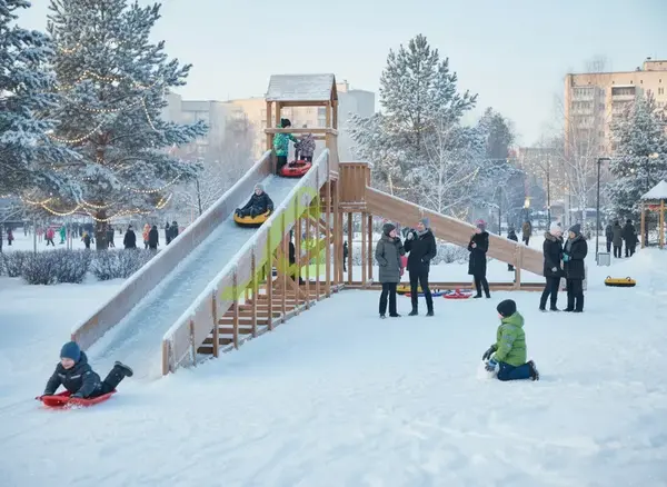 Зимняя деревянная горка Snow Fox - это отличный выбор для активного отдыха на свежем воздухе.