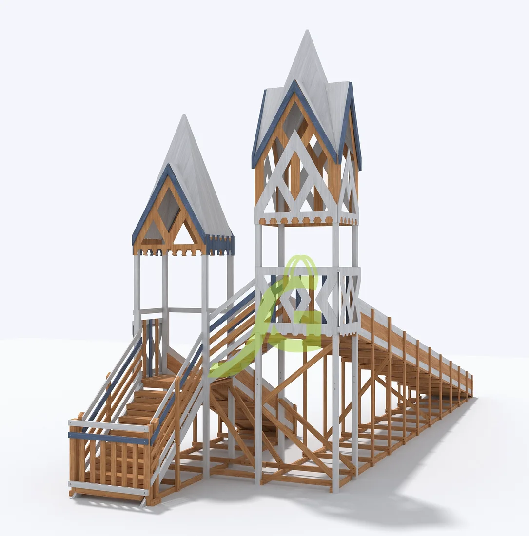 Зимняя деревянная горка Snow Fox 12 м с двумя скатами - это отличный выбор для активного отдыха всей семьи в холодное время года.