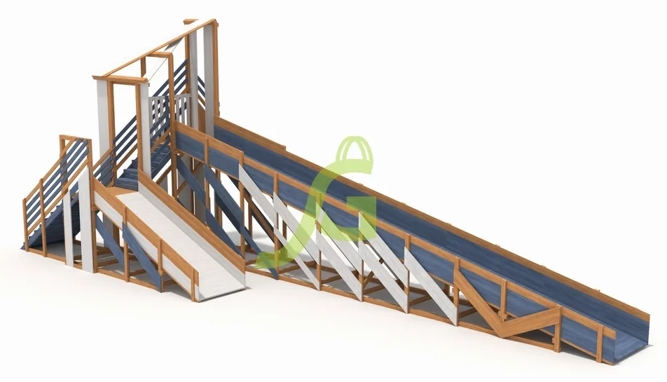 В комплект "Snow Fox 12 м" с двумя скатами мод.3 входит: длина: 14,98 м, ширина: 3,98 м, высота: 5,7 м, артикул: sf21-0124. Все элементы обработаны защитным покрытием, безопасным для детей. Сертификация по ГОСТ.
