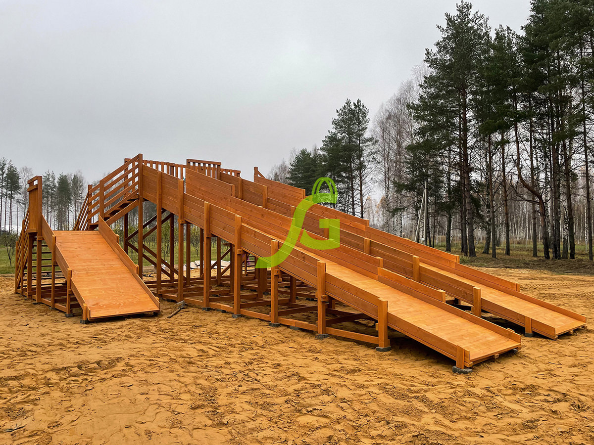 Зимняя деревянная горка Snow Fox 12 м с двумя скатами - это отличный выбор для активного отдыха всей семьи в холодное время года.