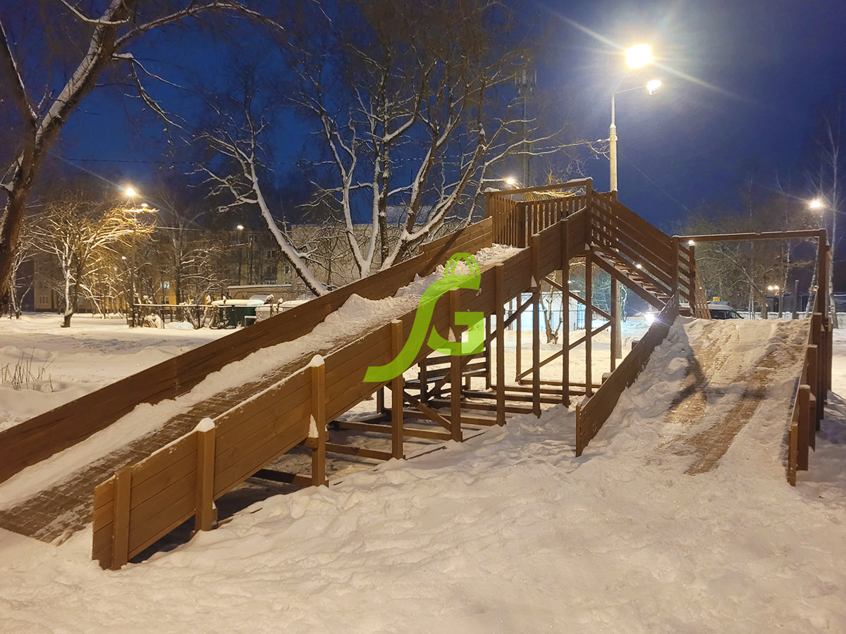 Зимняя деревянная горка Snow Fox 12 м с двумя скатами - это отличный выбор для активного отдыха всей семьи в холодное время года.