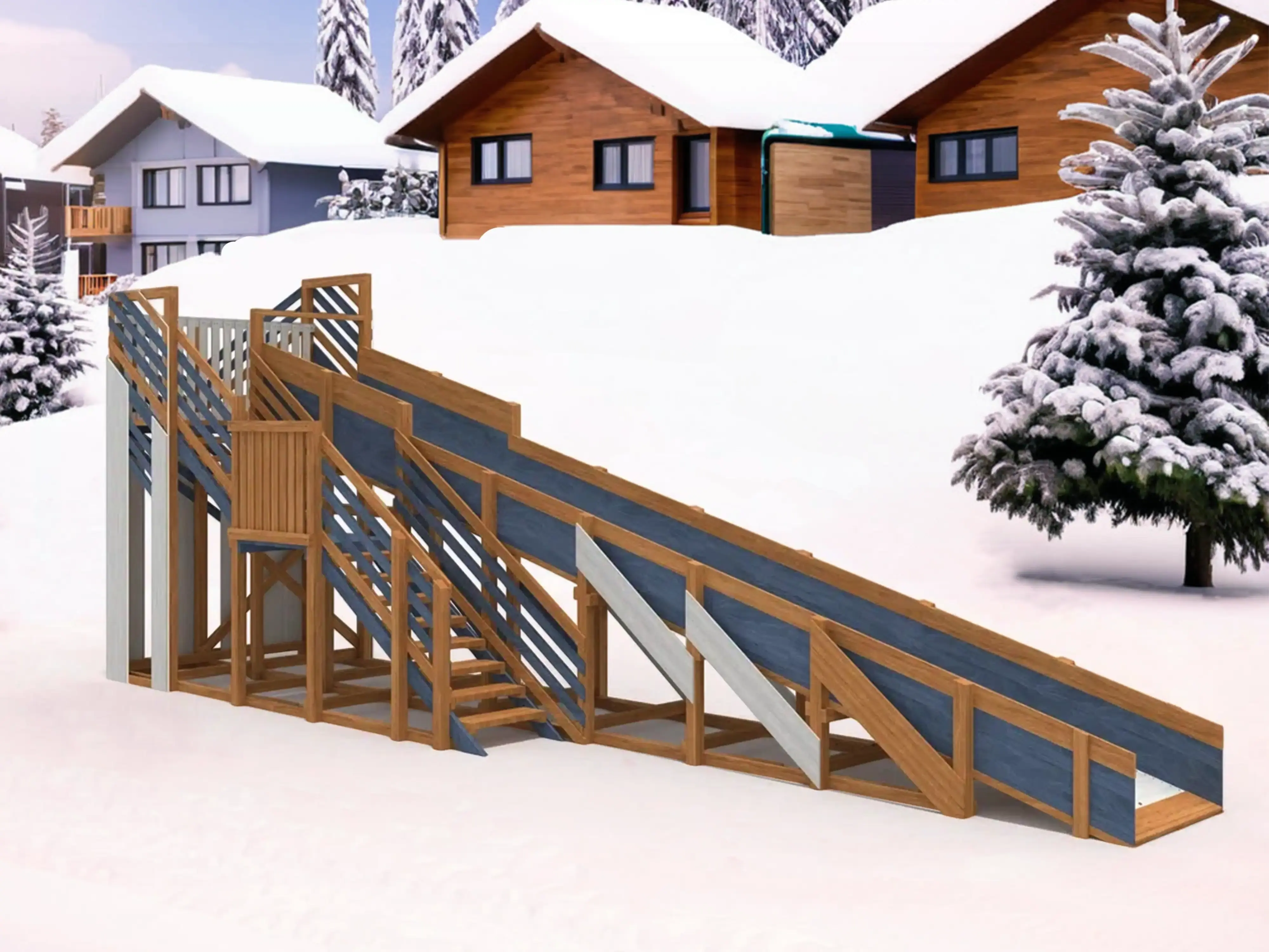 Зимняя деревянная горка Snow Fox 12 м с двумя скатами - это отличный выбор для активного отдыха всей семьи в холодное время года.