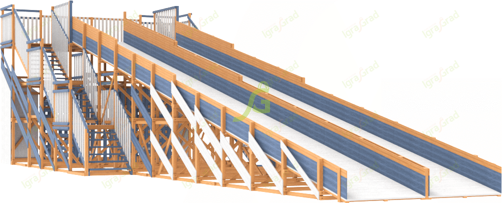 Зимняя деревянная горка Snow Fox 12 м с двумя скатами - это отличный выбор для активного отдыха всей семьи в холодное время года.