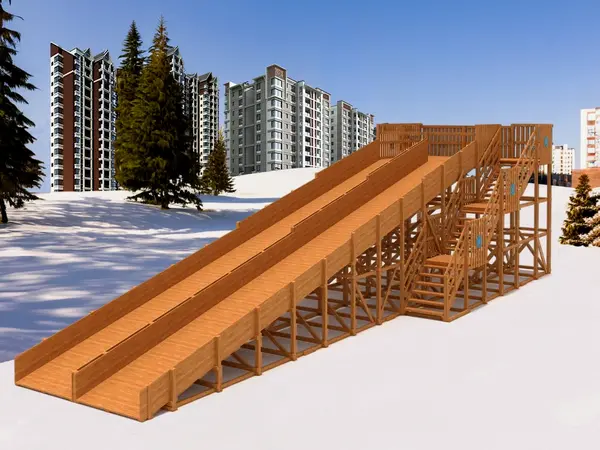 Зимняя горка Snow Fox с 18-метровым скатом - это масштабная конструкция для активного отдыха на свежем воздухе. Она подойдет для детей и взрослых, предлагая захватывающее катание и яркие впечатления в холодное время года. Главная особенность этой модели - внушительная длина спуска, которая гарантирует незабываемые моменты. Конструкция горки включает высокий подъем и длинный, широкий скат. Его длина составляет 18 метров, а ширина - более двух метров, что позволяет кататься с комфортом. Для безопасности скат оборудован надежными бортами, предотвращающими падение во время спуска. Усиленные балки обеспечивают устойчивость и прочность всей конструкции, выдерживая значительные нагрузки. Горка изготовлена из качественного клееного бруса сечением 90х90 мм, который используется для несущих стоек и стоек ската. Этот материал устойчив к перепадам температур и влажности, что важно для зимней эксплуатации. Все деревянные элементы обработаны защитной пропиткой, продлевающей срок службы и предотвращающей гниение. Крепежные элементы выполнены из оцинкованной стали, устойчивой к коррозии. Продукция соответствует стандартам ГОСТ, что подтверждает ее надежность и безопасность. Доставка площадки возможна по всей России. До транспортной компании мы доставляем бесплатно. Сборка горки занимает 1-2 дня, если вы решите справиться самостоятельно. В комплекте вы найдете подробную инструкцию. Также вы можете воспользоваться услугами наших опытных мастеров, которые профессионально установят конструкцию на вашем участке.