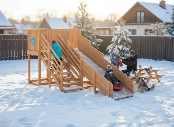Зимняя деревянная горка Snow Fox - это отличный выбор для активного отдыха на свежем воздухе.