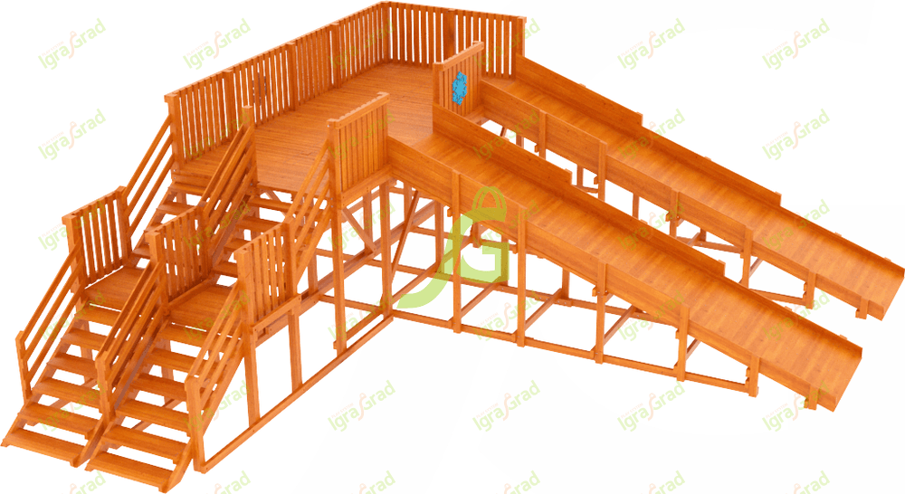 Зимняя горка "Snow Fox" со скатом 5,9 м - это отличный выбор для активного отдыха на свежем воздухе в холодное время года. Она подойдет для детей и взрослых, предлагая безопасное и веселое времяпровождение. Главная особенность этой модели - два параллельных ската, которые позволяют кататься одновременно или устраивать дружеские соревнования. Конструкция горки предусматривает две лестницы с перилами, что исключает толкотню и помогает детям научиться соблюдать очередность. Высота горки составляет 3,1 м, а длина ската - 5,9 м, что обеспечивает захватывающий спуск. Общие габариты площадки - 8,41 м в ширину и 7,8 м в длину. Скаты оборудованы бортиками для дополнительной безопасности, а ступеньки имеют ребристую поверхность, предотвращающую скольжение. Для изготовления горки используется клееный брус 90х90 мм для несущих стоек и брус 45х90 мм для стоек ската. Толщина доски элементов ската - 35 мм. Все деревянные детали обработаны нетоксичной пропиткой на водной основе, которая защищает древесину от воздействия погодных условий и продлевает срок службы конструкции. Горка соответствует требованиям ГОСТ и может быть использована как на частных территориях, так и в общественных местах. Мы доставляем площадки по всей России. Доставка до терминала транспортной компании в вашем городе бесплатна. Вы можете собрать горку самостоятельно, это займет 1-2 дня, или воспользоваться услугами наших опытных мастеров. В комплекте с горкой вы получите подробную инструкцию по сборке и эксплуатации.