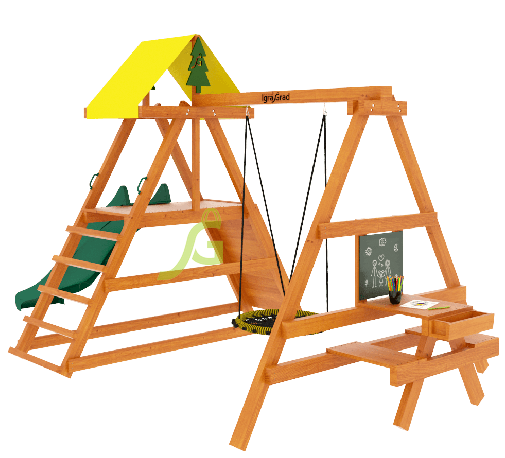 В комплект Старт 3 входит: длина: 4,94 м, ширина: 2,5 м, высота: 2,46 м. Все элементы обработаны защитным покрытием, безопасным для детей. Сертификация по ГОСТ.