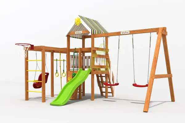 Детская игровая площадка В1 - это универсальный комплекс для активного отдыха детей от 3 до 10 лет. Она станет настоящим центром притяжения на вашем участке, предлагая множество вариантов для игр и физического развития. Площадка объединяет в себе основные элементы для веселых приключений на свежем воздухе. В состав комплекса В1 входит просторная башня с тентованной крышей, где дети смогут прятаться и придумывать свои игры. Спуститься вниз можно по волновой горке длиной 1,75 метра. Для любителей лазать предусмотрены скалодром с цветными камнями, веревочная сетка и шведская стенка. Качельный модуль оборудован двумя качелями-лодочками и одной кубельковой качелью, а также турником и гимнастическими кольцами для тренировки ловкости и силы. Дополняет площадку декоративный элемент "Солнышко". Площадка В1 изготовлена из клееного бруса, который прошел обработку специальными нетоксичными пропитками для защиты дерева от внешних воздействий и обеспечения безопасности детей. Все крепежные элементы оцинкованы, что предотвращает появление ржавчины и гарантирует долговечность конструкции. Прочные материалы и надежные соединения обеспечивают устойчивость комплекса, соответствуя стандартам ГОСТ для детских игровых площадок. Мы доставляем площадки по всей России. Доставка до терминала транспортной компании в вашем городе осуществляется бесплатно. Вы можете собрать площадку самостоятельно, следуя подробной инструкции, что займет 1-2 дня. Если вы предпочитаете доверить сборку профессионалам, наши мастера готовы выполнить эту работу качественно и в срок.