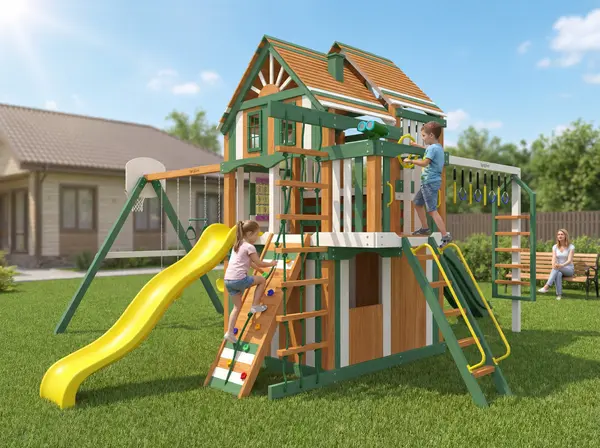 Детская площадка Крепость Фани Делюкс 2 - это полноценный игровой комплекс для детей от 3 до 12 лет.
