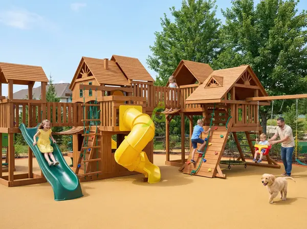Детская площадка Шато Сан мод.1 - это масштабный игровой комплекс для детей от 3 до 12 лет, который станет центром притяжения на вашем загородном участке.