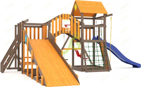 Расширенная модель с волновой горкой и зимним скатом. Качели, деревянная крыша.