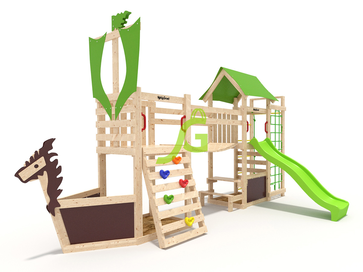 В комплект W19 Спорт входит: длина: 2,69 м, ширина: 4,72 м, высота: 2,88 м, артикул: igragrad-w19-sport-v4. Все элементы обработаны защитным покрытием, безопасным для детей. Сертификация по ГОСТ.