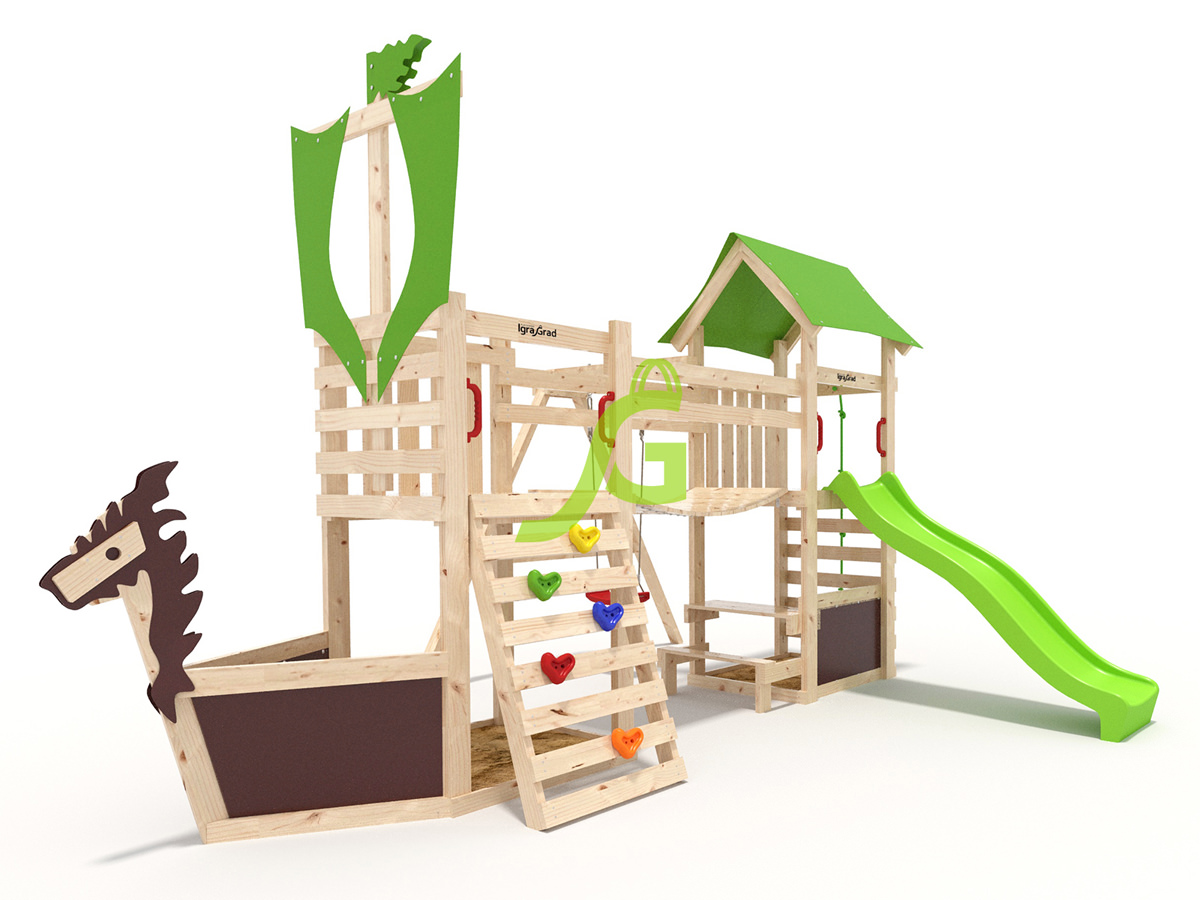 Детская площадка W20 - это игровой комплекс для детей дошкольного и младшего школьного возраста. Ее дизайн напоминает корабль викингов, что вдохновит на множество приключений и сюжетно-ролевых игр прямо на вашем участке. На площадке W20 ваш ребенок найдет множество активностей. Здесь есть волновая горка длиной 2,2 метра, где можно с ветерком прокатиться вниз. Качельный модуль с одиночной "лодочкой" позволит покачаться в свое удовольствие. Перемещаться между двухуровневыми башнями, одна из которых украшена тентовым декором "паруса", можно по прочному деревянному мостику. Также в комплекте деревянная лестница, канат и скалодром с зацепами для развития ловкости. В нижней части площадки расположена песочница с декором в виде корабля и "дракона", а также еще одна песочница со столиком-лавочкой. Площадка изготовлена из древесины высшего качества. Опоры выполнены из клееного бруса камерной сушки размером 45х90 мм, что обеспечивает прочность и долговечность конструкции. Все детали обработаны безопасной пропиткой, защищающей дерево от влаги и вредителей. Крепеж оцинкован, чтобы избежать коррозии. Конструкция соответствует требованиям ГОСТ, гарантируя безопасность во время игр. Мы доставляем площадки по всей России. Доставка до терминала транспортной компании в вашем городе бесплатна. Собрать площадку можно самостоятельно за 1-2 дня, так как все необходимые отверстия для основных узловых элементов уже есть. Если вы предпочитаете профессиональный подход, наши мастера могут выполнить сборку на вашем участке.