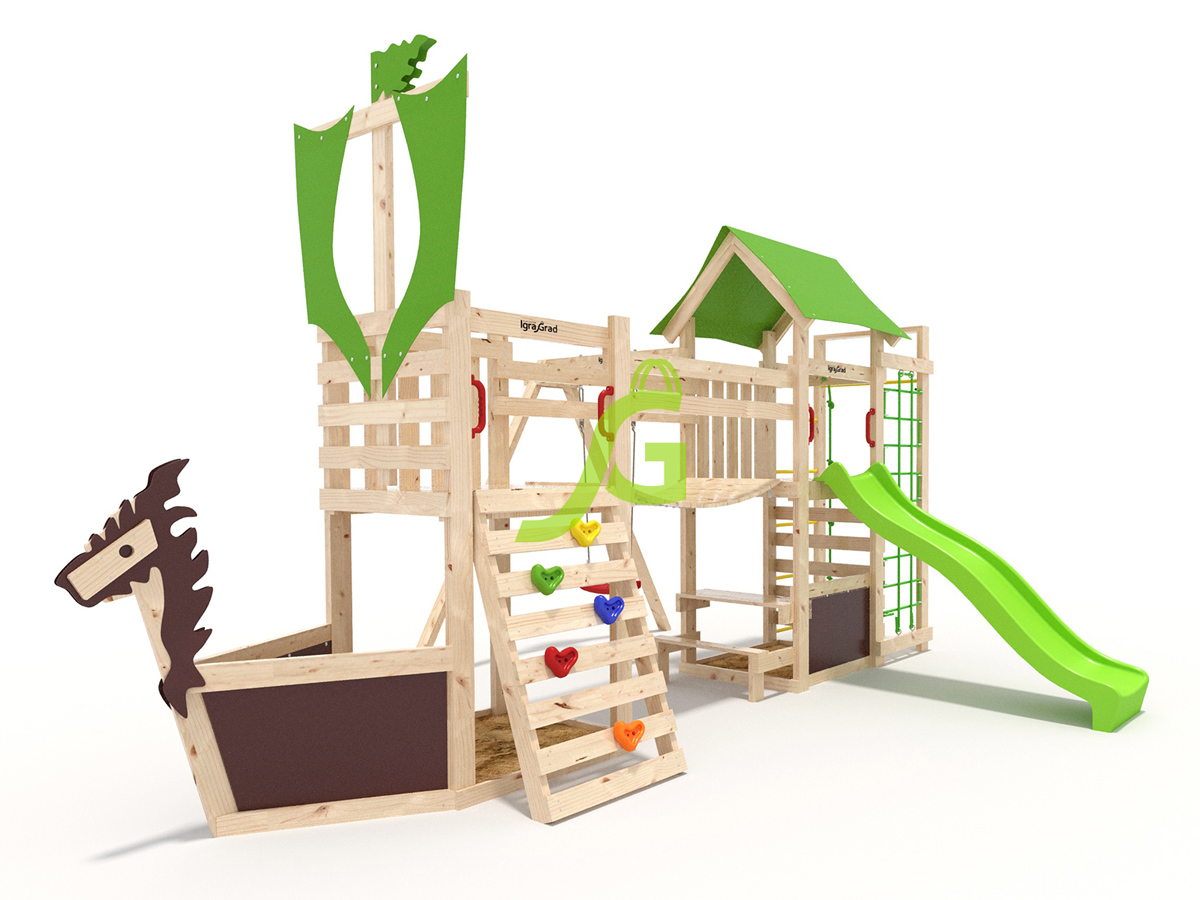 В комплект W20 Спорт входит: длина: 3,93 м, ширина: 4,72 м, высота: 2,88 м, артикул: igragrad-w20-sport-v4. Все элементы обработаны защитным покрытием, безопасным для детей. Сертификация по ГОСТ.