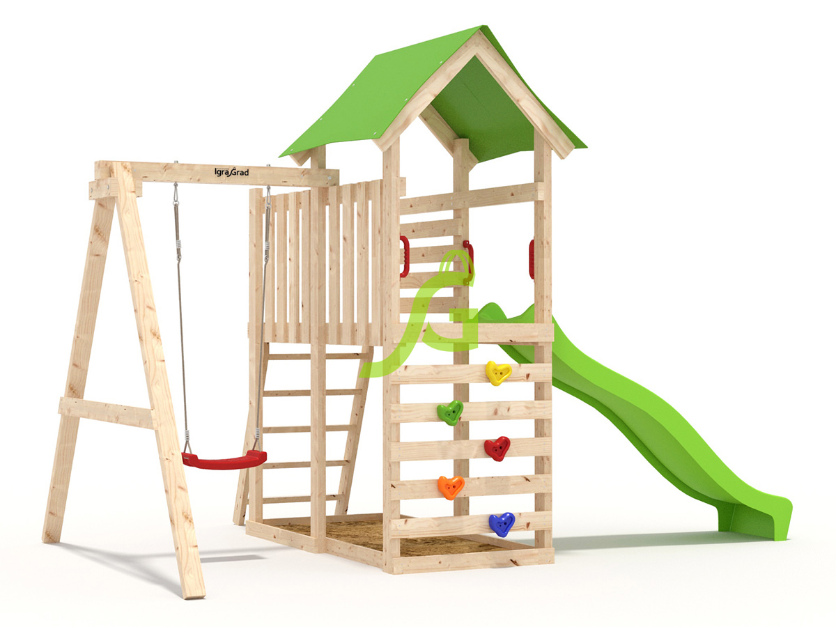 В комплект W5 входит: длина: 3,92 м, ширина: 2,29 м, высота: 2,65 м, артикул: igragrad-w5-v4. Все элементы обработаны защитным покрытием, безопасным для детей. Сертификация по ГОСТ.