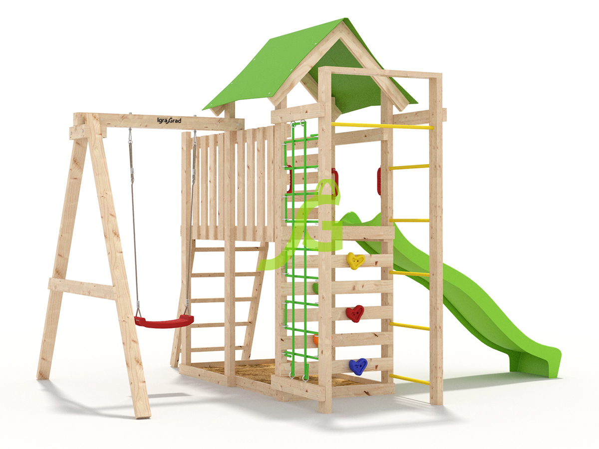 В комплект W5 Спорт входит: длина: 3,92 м, ширина: 2,79 м, высота: 2,65 м, артикул: igragrad-w5-sport-v4. Все элементы обработаны защитным покрытием, безопасным для детей. Сертификация по ГОСТ.
