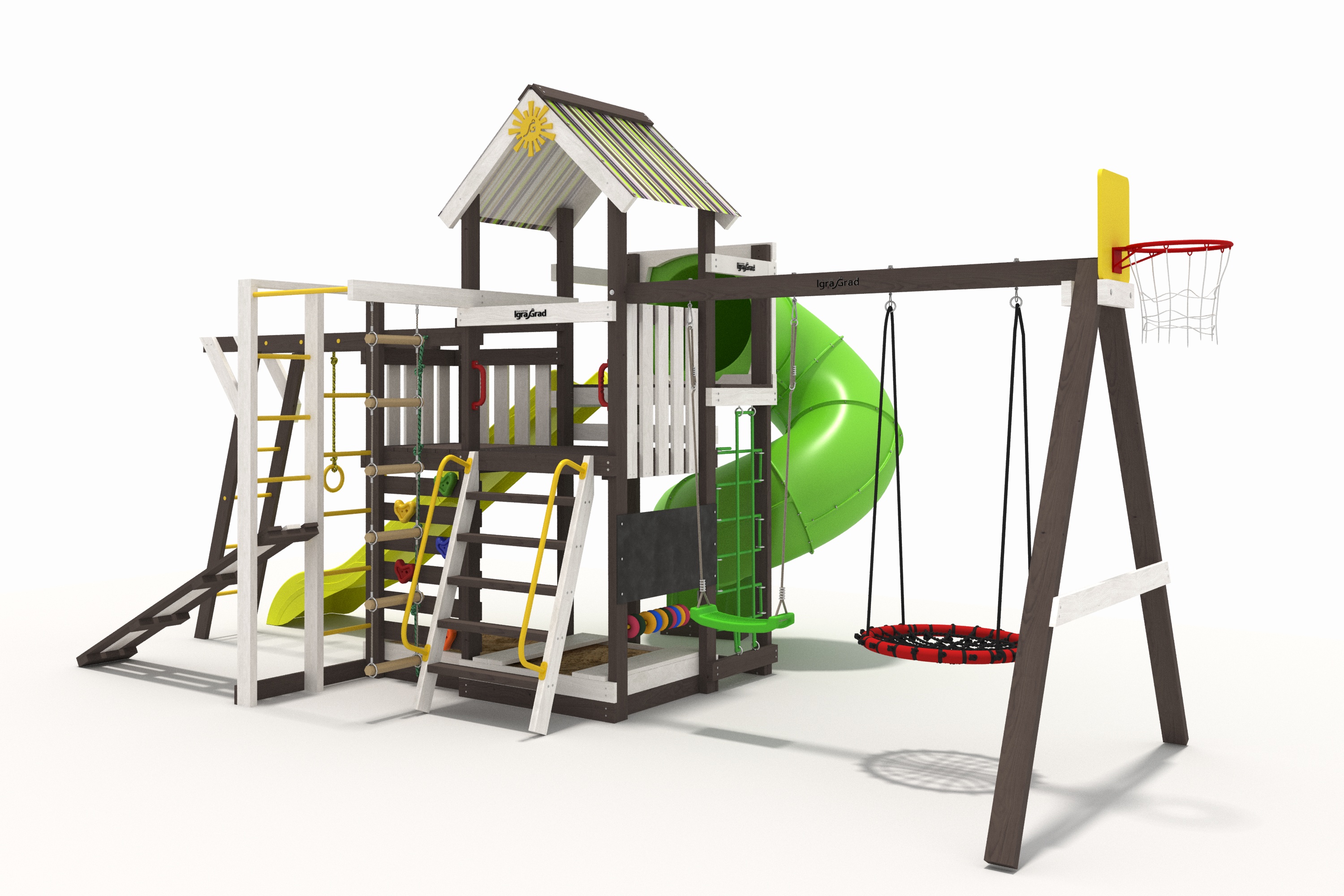 Детская игровая площадка X4 - это полноценный центр для активных игр и развития вашего ребенка, рассчитанный на детей от 3 до 12 лет. Ее главная особенность - уникальное сочетание двух горок: открытой и закрытой, что дарит разные ощущения от спуска. Комплекс включает просторную башню с тентовой крышей, защищающей от солнца. Здесь есть две горки: составная длиной 2,85 метра для быстрых спусков и горка-труба с высоты 1,5 метра для тех, кто любит приключения. Качельный модуль оборудован качелями "лодочка" и комфортными качелями-гнездом. Для развития ловкости предусмотрены скалодром с камнями, веревочная сетка, деревянная и веревочная лестницы, канат и рукоход. Спортивную подготовку дополняют шведская стенка, турник и гимнастические кольца. Для творческих занятий есть доска для рисования мелом и счеты. Площадка X4 изготовлена из клееного бруса, который обработан специальной пропиткой для защиты от влаги и вредителей. Все соединения выполнены оцинкованным крепежом, что обеспечивает надежность и долговечность конструкции. Элементы площадки соответствуют стандартам ГОСТ, а отсутствие "глухих" углов позволяет вам всегда видеть ребенка. Доставка площадки осуществляется по всей России, до терминала транспортной компании в вашем городе она будет доставлена бесплатно. Вы можете собрать площадку самостоятельно за 1-2 дня, следуя подробной инструкции, или воспользоваться услугами наших профессиональных мастеров, которые соберут комплекс под ключ.